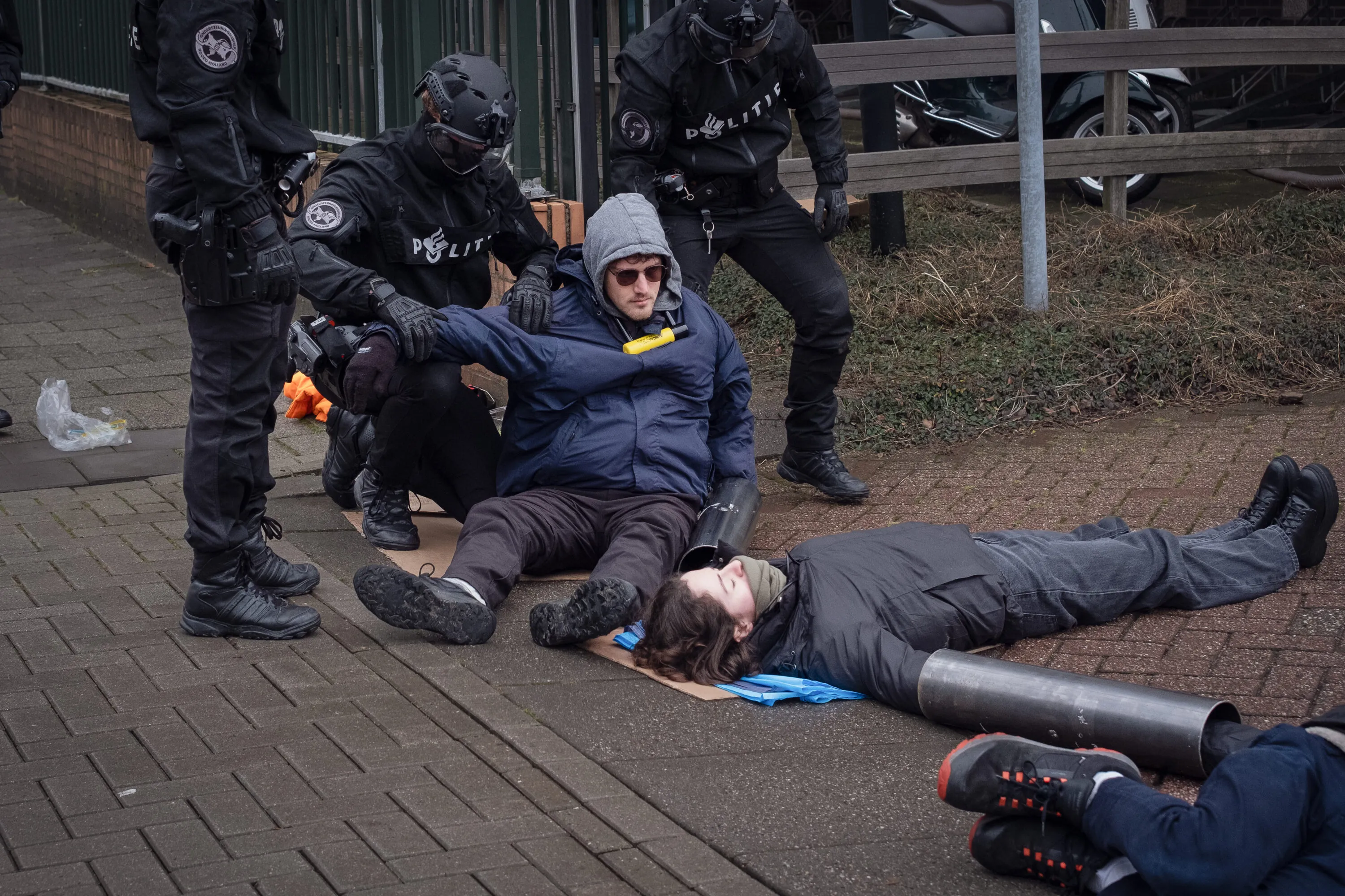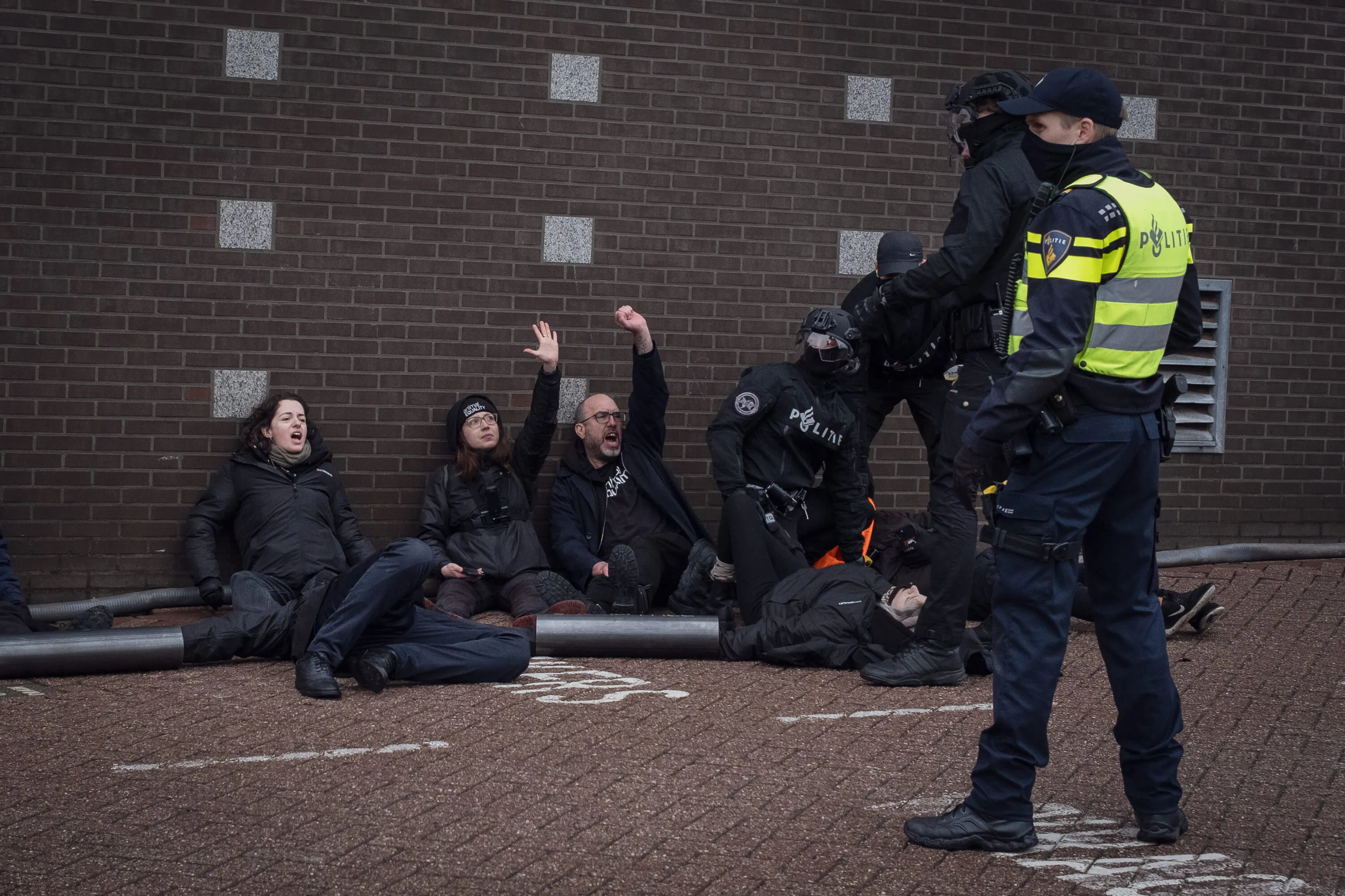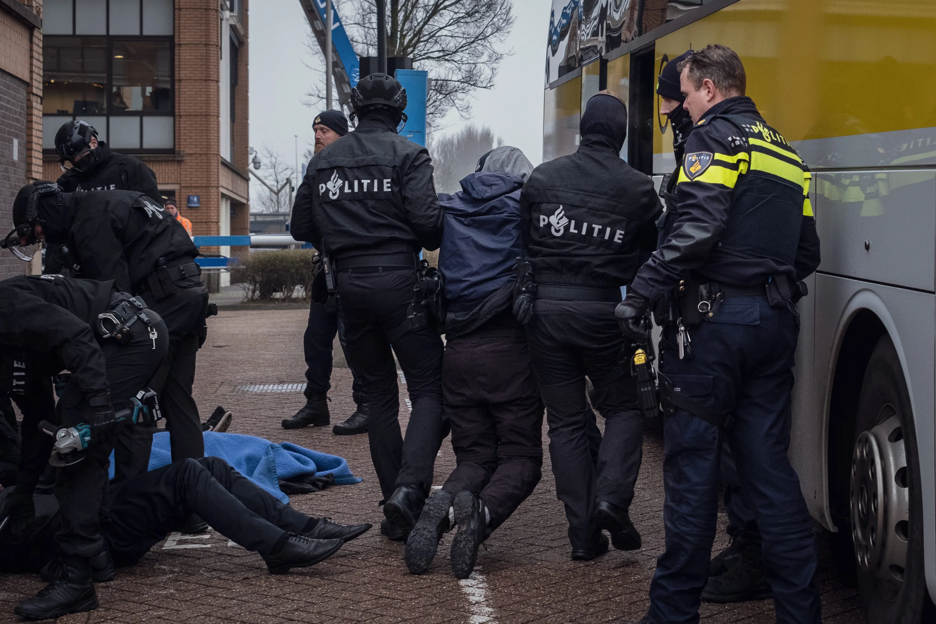 Mentre ero a terra, incatenata al freddo, e mentre i reparti speciali della polizia olandese segavano con un flessibile i tubi che ci tenevano legati, a pochi millimetri dalle nostre braccia avevamo una lama che compie 10.000 giri al minuto. Ma io pensavo solo a loro.