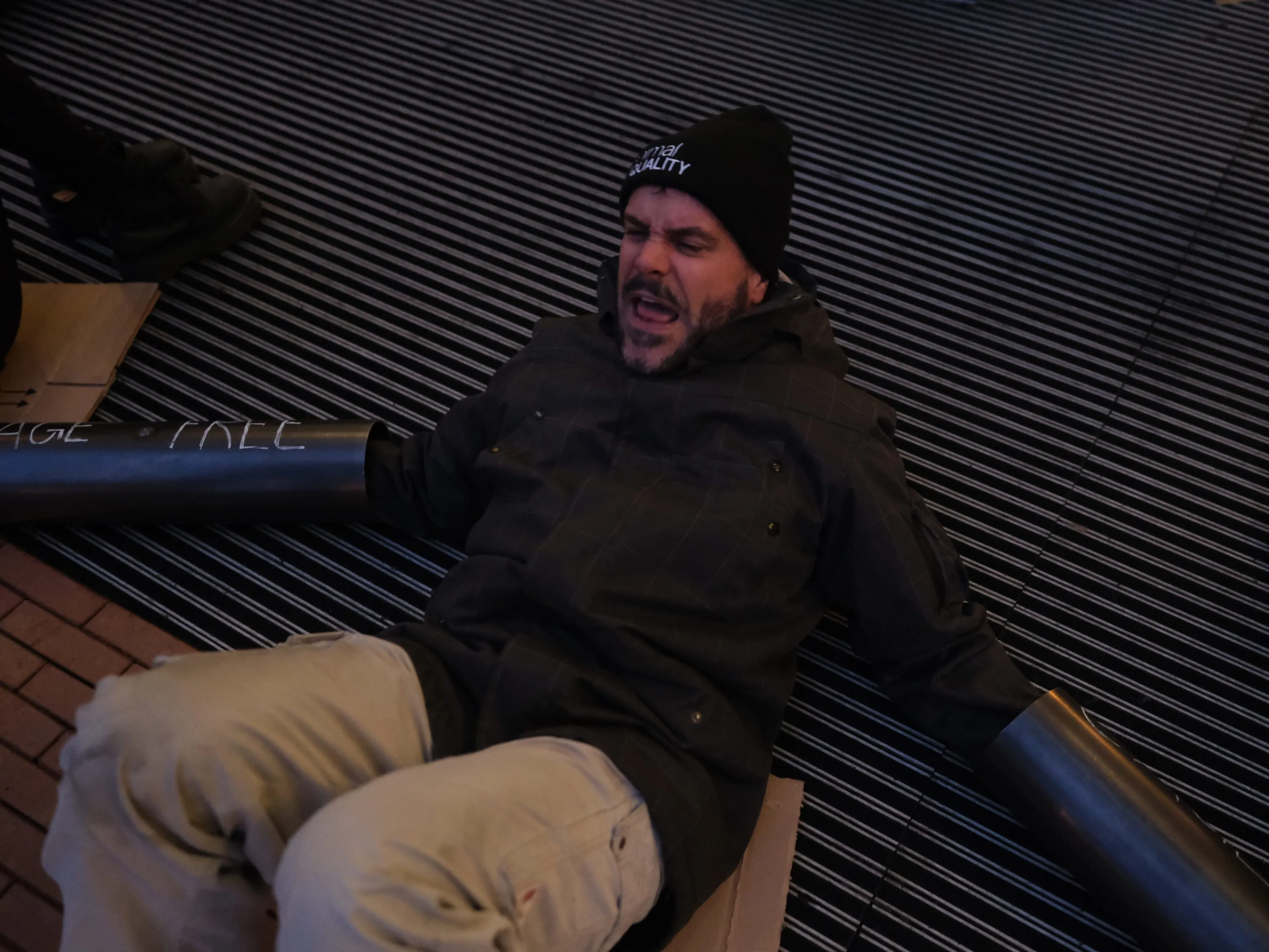 La polizia è arrivata sul posto poco dopo l’inizio dell’azione, avvertendo che tutte le persone presenti avrebbero potuto essere arrestate, indipendentemente dal fatto che rimanessero incatenate o meno. Ma non ci siamo fermati.