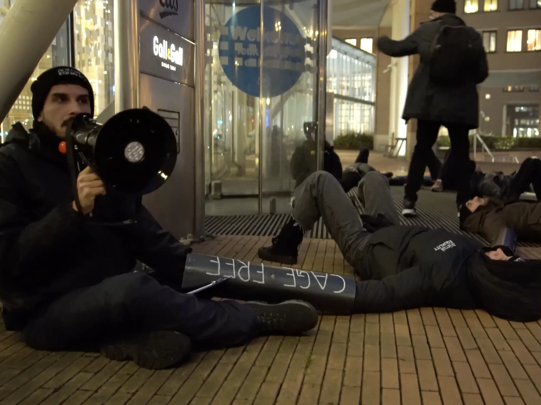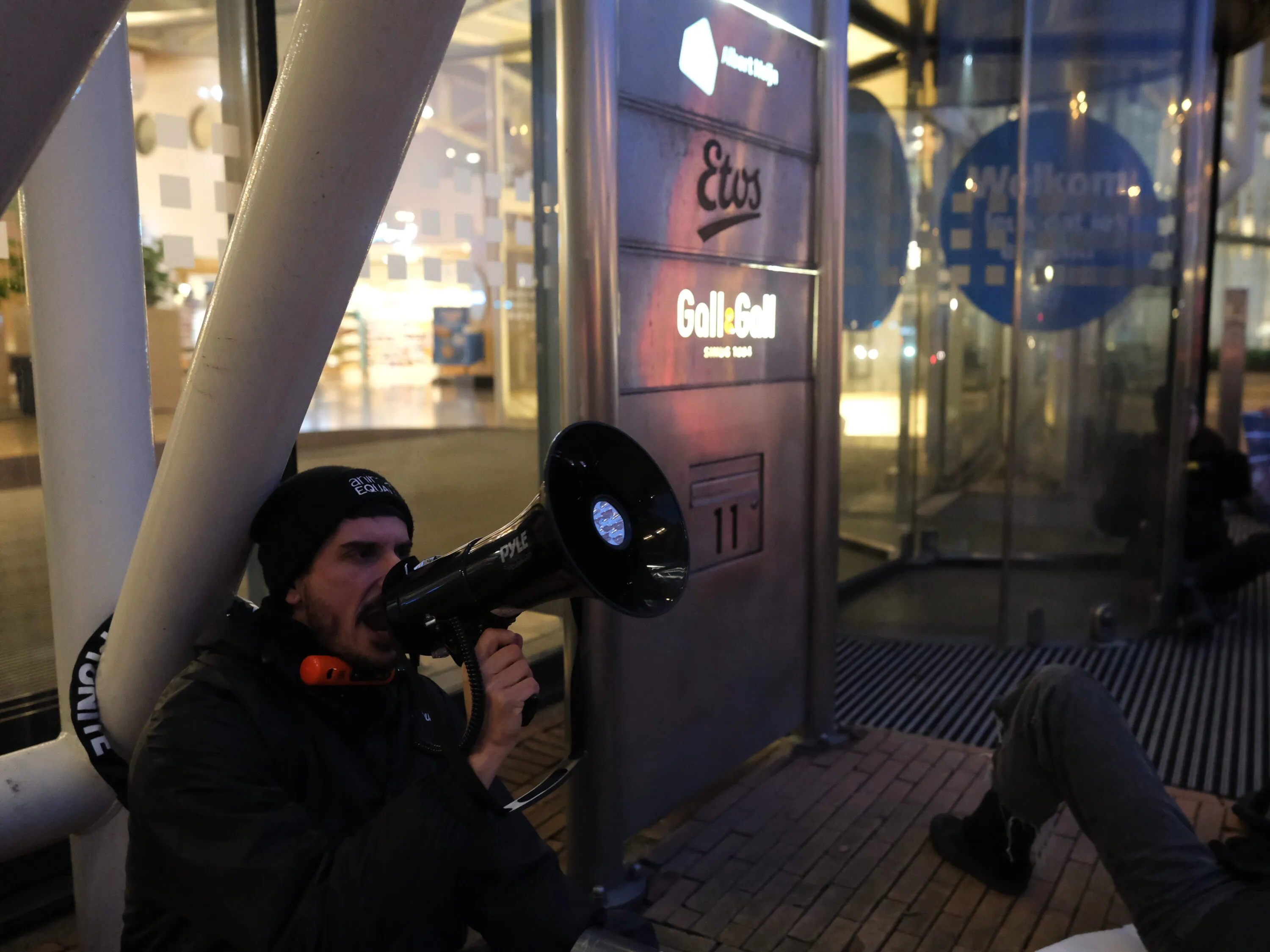La protesta si è svolta a Zaandam in Olanda, a partire dalle prime luci del mattino, ed è durata oltre quattro ore: gli attivisti hanno continuato a rimanere incatenati davanti all’ingresso del gigante della distribuzione alimentare nonostante le minacce di arresto da parte della polizia. Tuttavia non è stato effettuato alcun arresto.