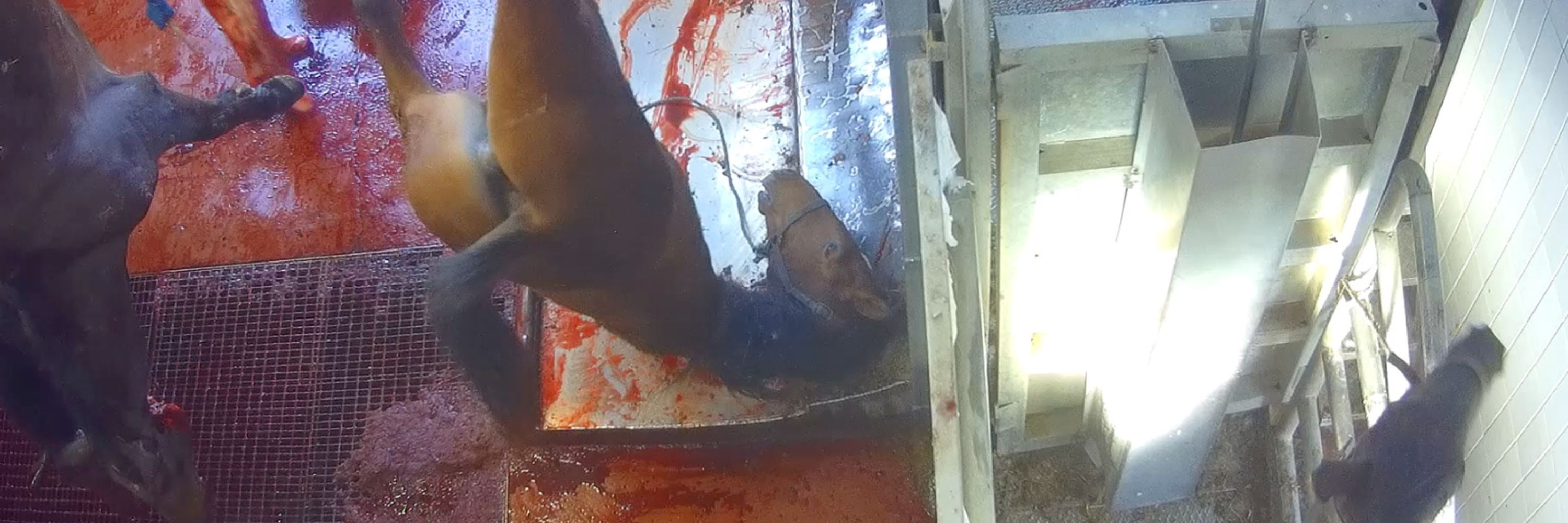 Abbiamo documentato gravi negligenze anche nelle fasi di stordimento e macellazione. Su dozzine di cavalli, il primo tentativo di stordimento necessario per procedere alla macellazione non ha funzionato, così gli operatori hanno dovuto eseguire un secondo stordimento, provocando ulteriore sofferenza agli animali.