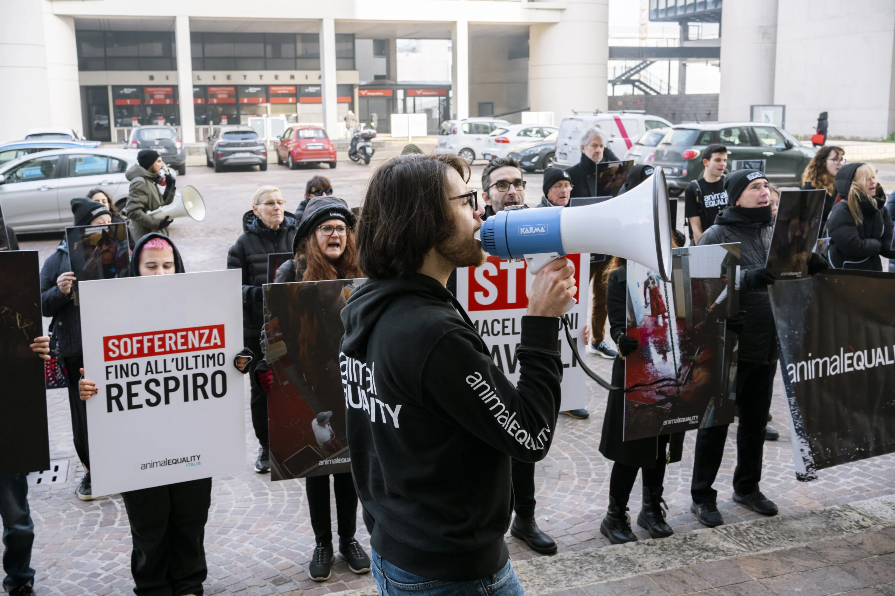 Con il presidio organizzato davanti alla Regione Emilia Romagna abbiamo richiamato le autorità a garantire la protezione degli animali attraverso controlli effettivi anche all’interno dei macelli. Come ha ricordato Matteo Cupi, direttore esecutivo di Animal Equality Italia: