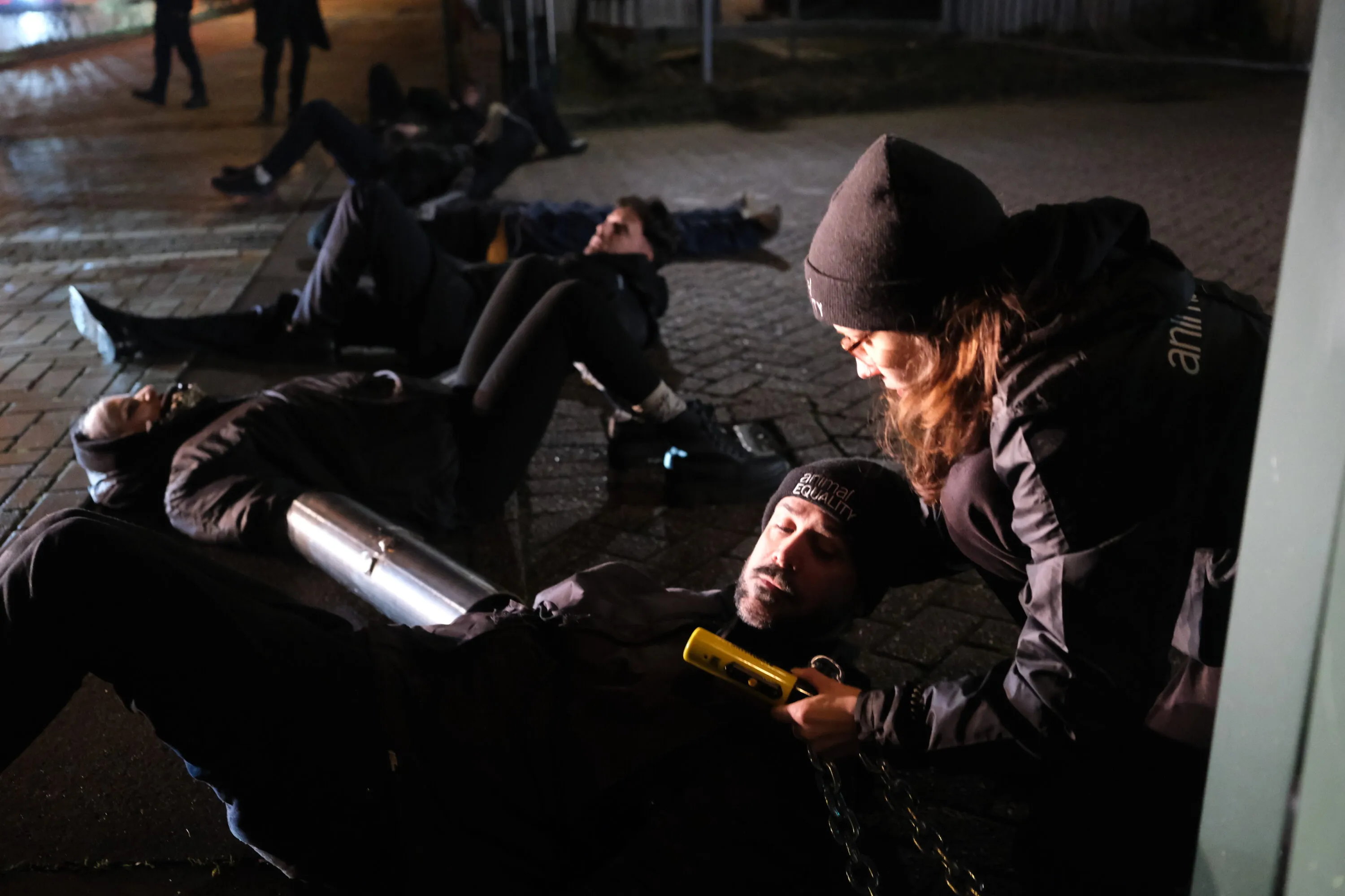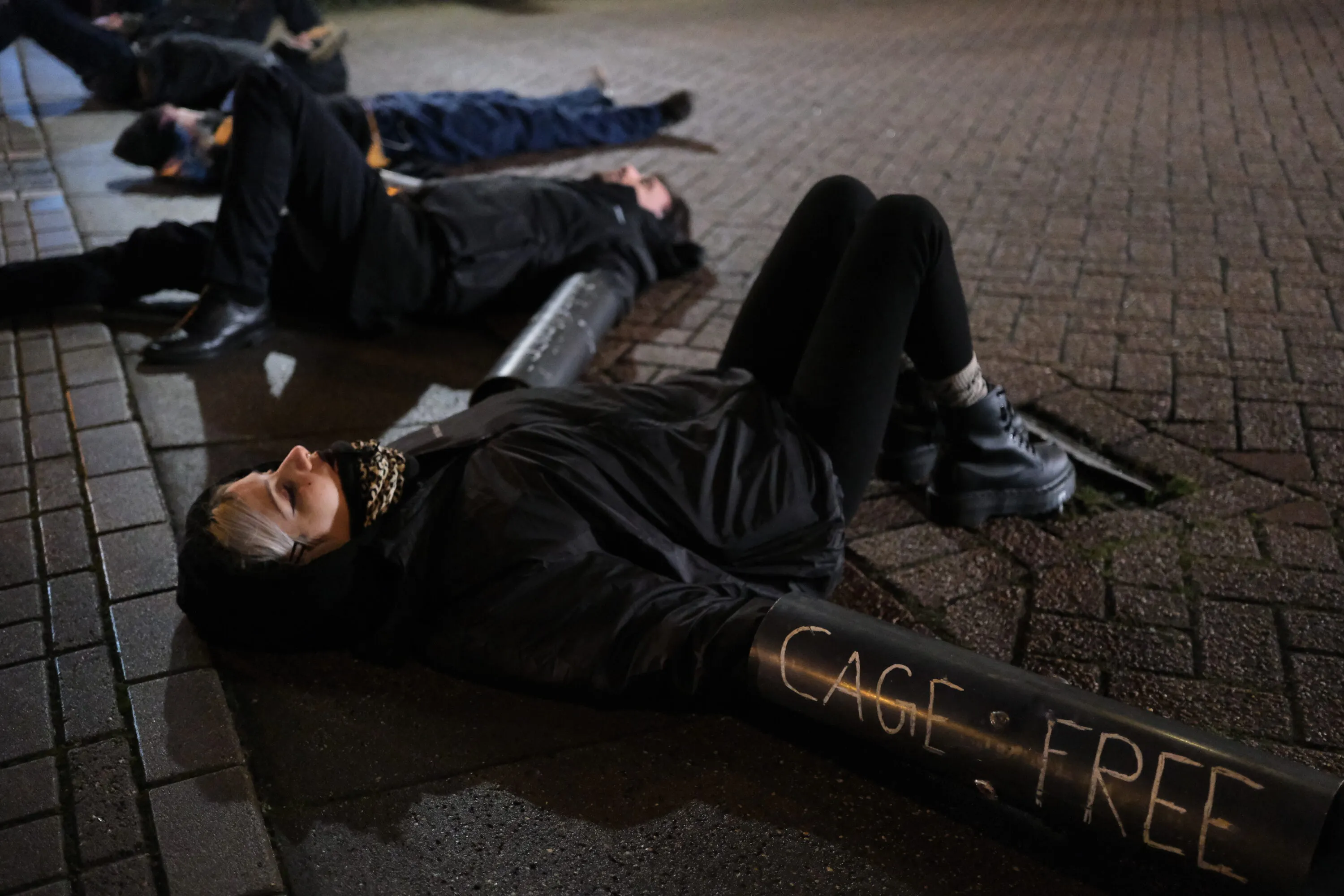 Sette attivisti per i diritti degli animali provenienti da tutta Europa sono stati arrestati dopo essersi incatenati insieme in un’azione di disobbedienza civile presso la sede della multinazionale Ahold Delhaize, in Olanda.